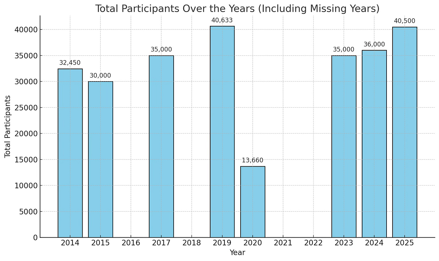 The curious cat in me pulled out data about participation rates since inception. Apparently the peak year is way back in 2019, though the number is slowly growing over the last three years. This is the data I extracted from Gemini.