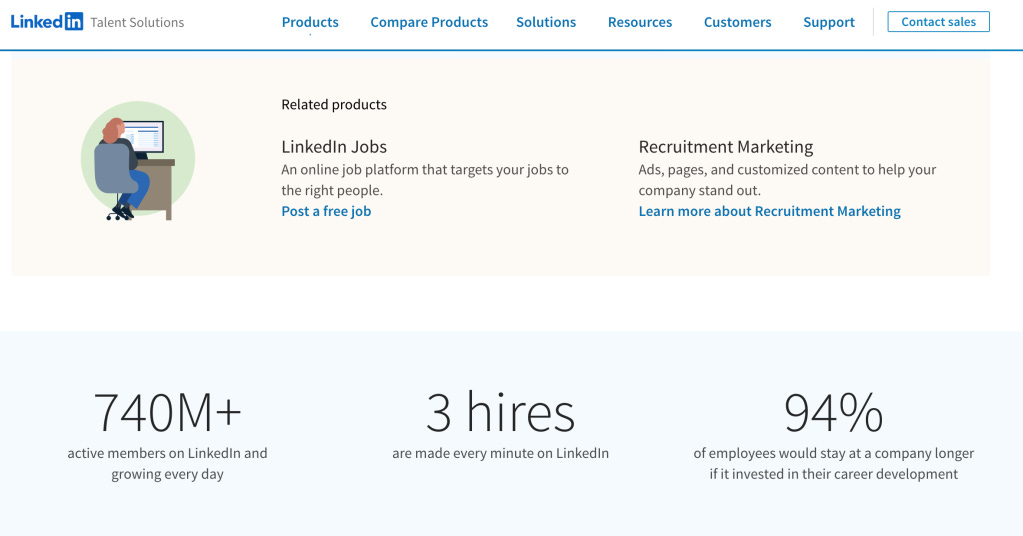 That amounts to 24x60x3 =4320 hires per day. Assuming that people get hired during weekends as well, the company would probably be helping 1.6 million people get hired every year. That sounds like an impressive number, but we should not be misled by this data point. We must compare this with the number of people on LinkedIn who are looking for jobs.