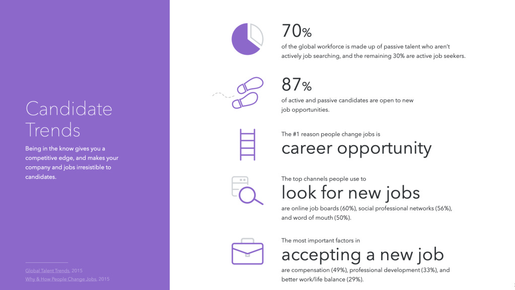 As per LinkedIn's 2015 hiring statistics report, 30% of the workforce is usually hunting for a job.