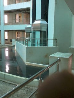 There are six floors in our hostel. The lift does not stop at the third and second floors. I felt a bit uneasy about it in the beginning but later found out that it was a good idea. Some of the buttons don’t work. And a few emergency numbers are written in blue ink on the control panel. The transparent half on the other side enables you to enter the hostel. You can often see internet refugees sitting out to claim their share of the online bounty.