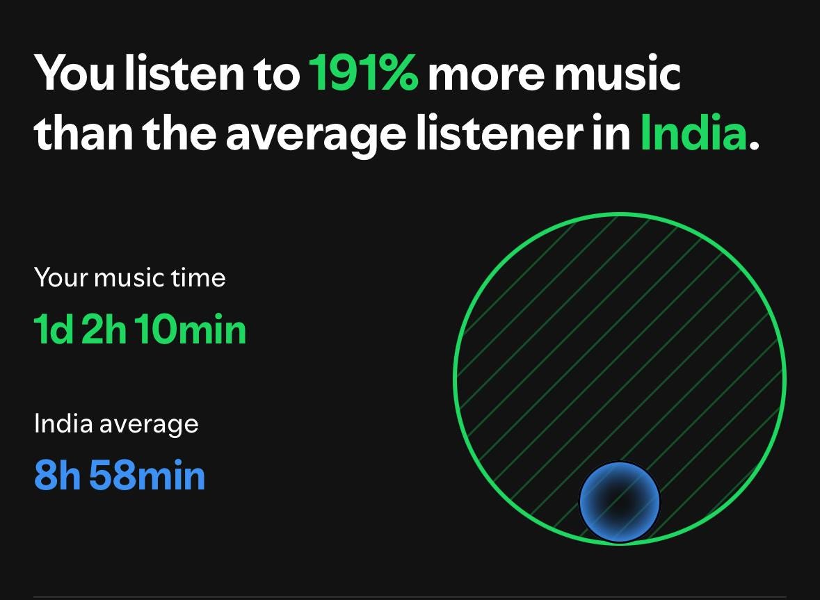 This stat becomes a bragging right in itself. Apparently my music consumption is 191% more than that of an average music fan in India.