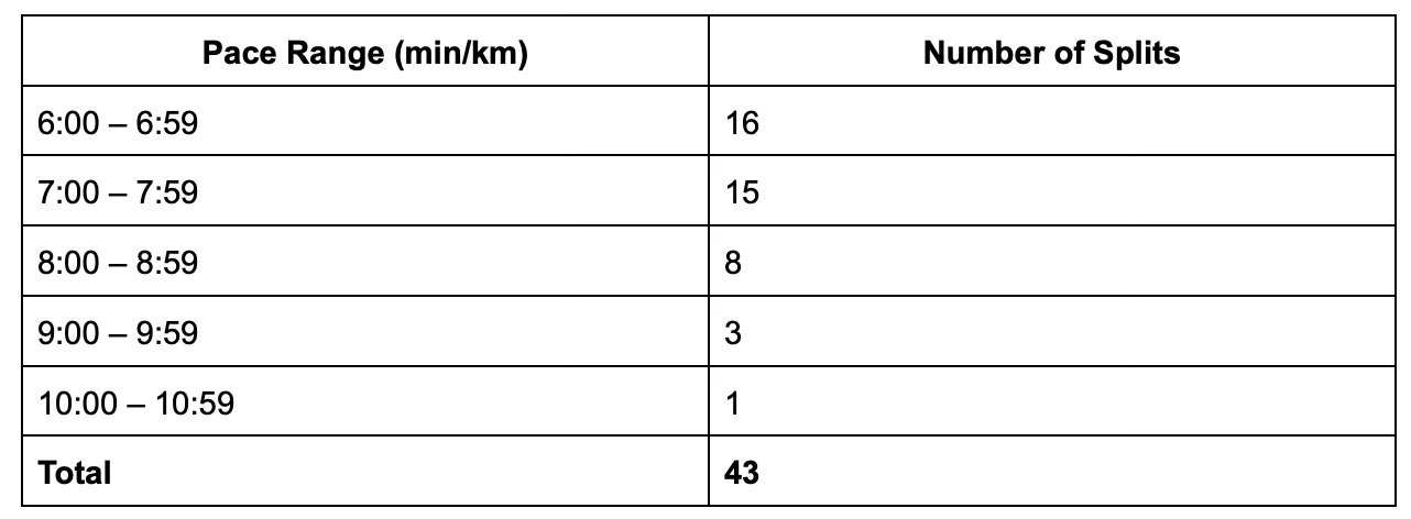 During the last couple of weeks I was very concerned about the variation in stats and the reality of training fatigue. But I am glad that I didn’t give it more importance than the desire to show up and finish the full marathon.