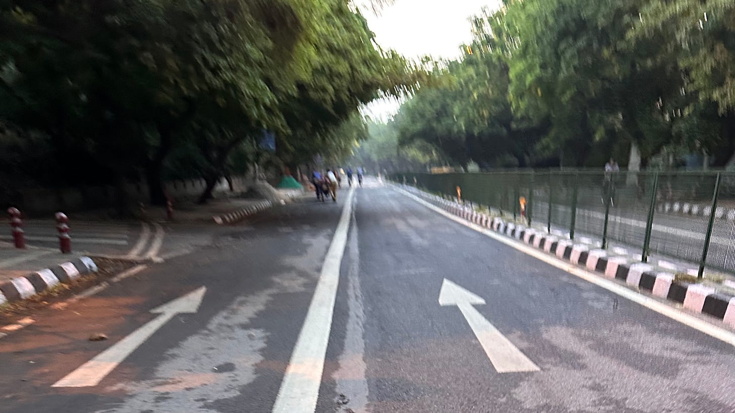 A peacock crossed the road right after I clicked a gorgeous pic of Delhi roads. I was all set to burn 1000 calories and start my day with a bang.